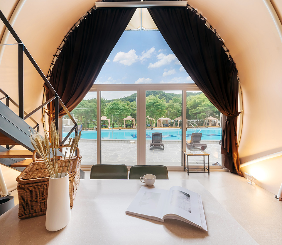 즐거움과 편안함이 공존하는 노마드 글램핑에서 소중한 하루를 보내세요.