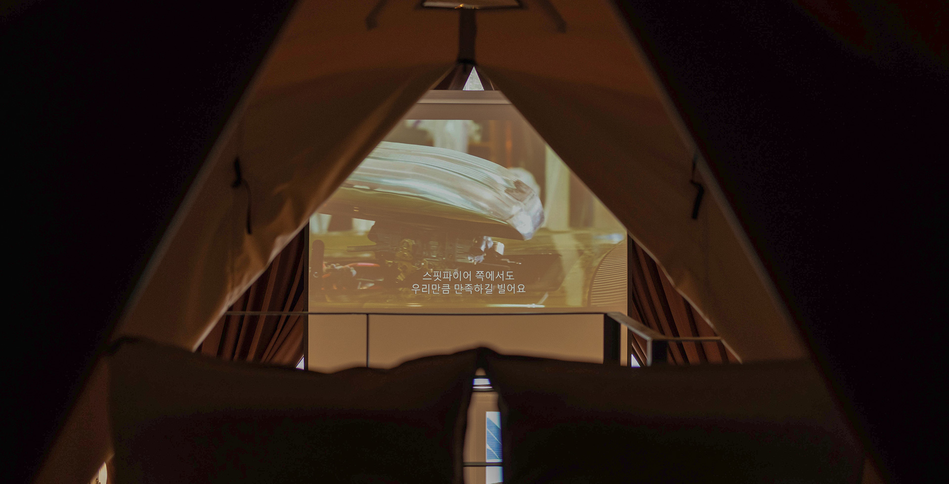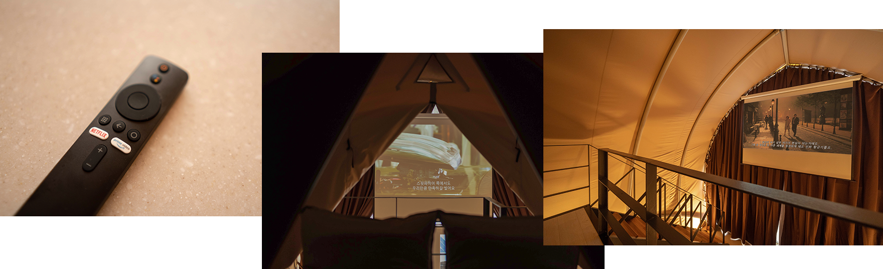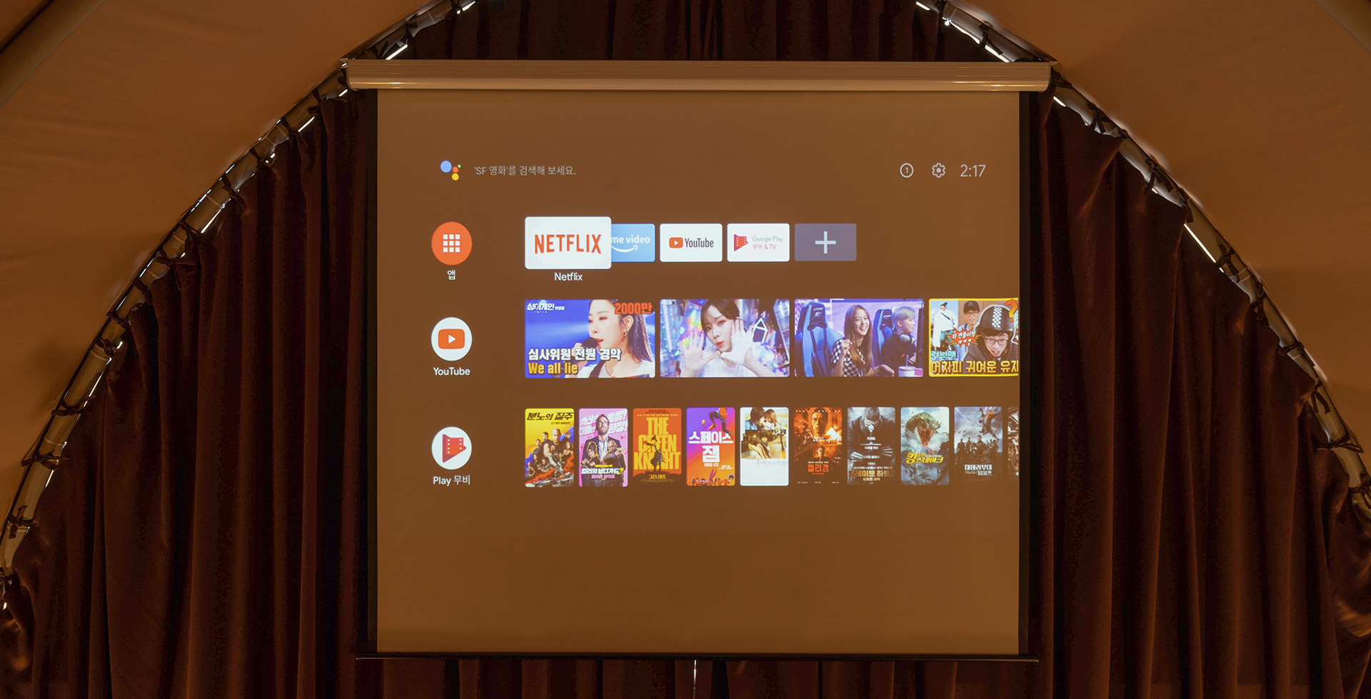 100인치 스크린에서 TV 시청이 가능하며 스트리밍 미디어 플레이어를 통해