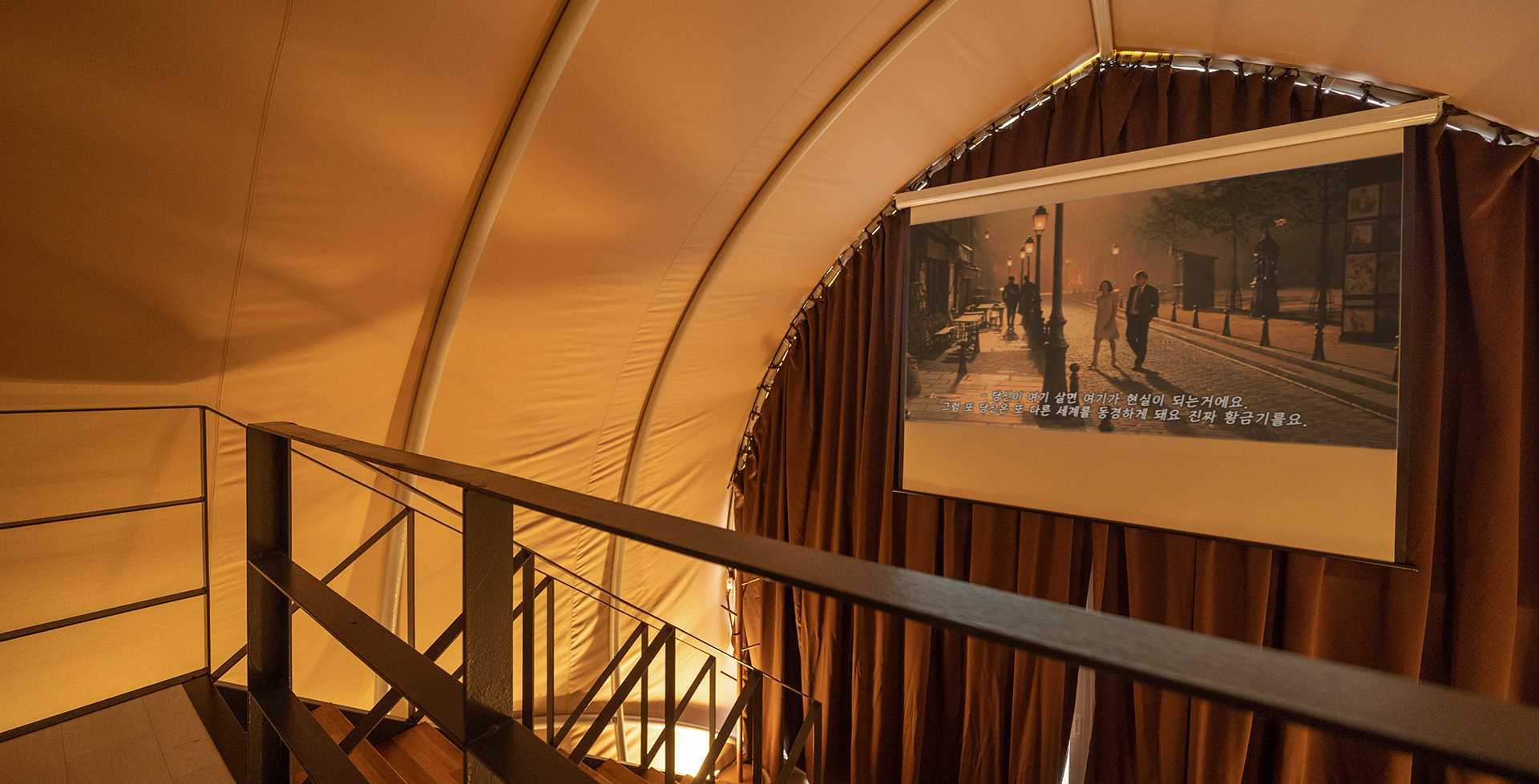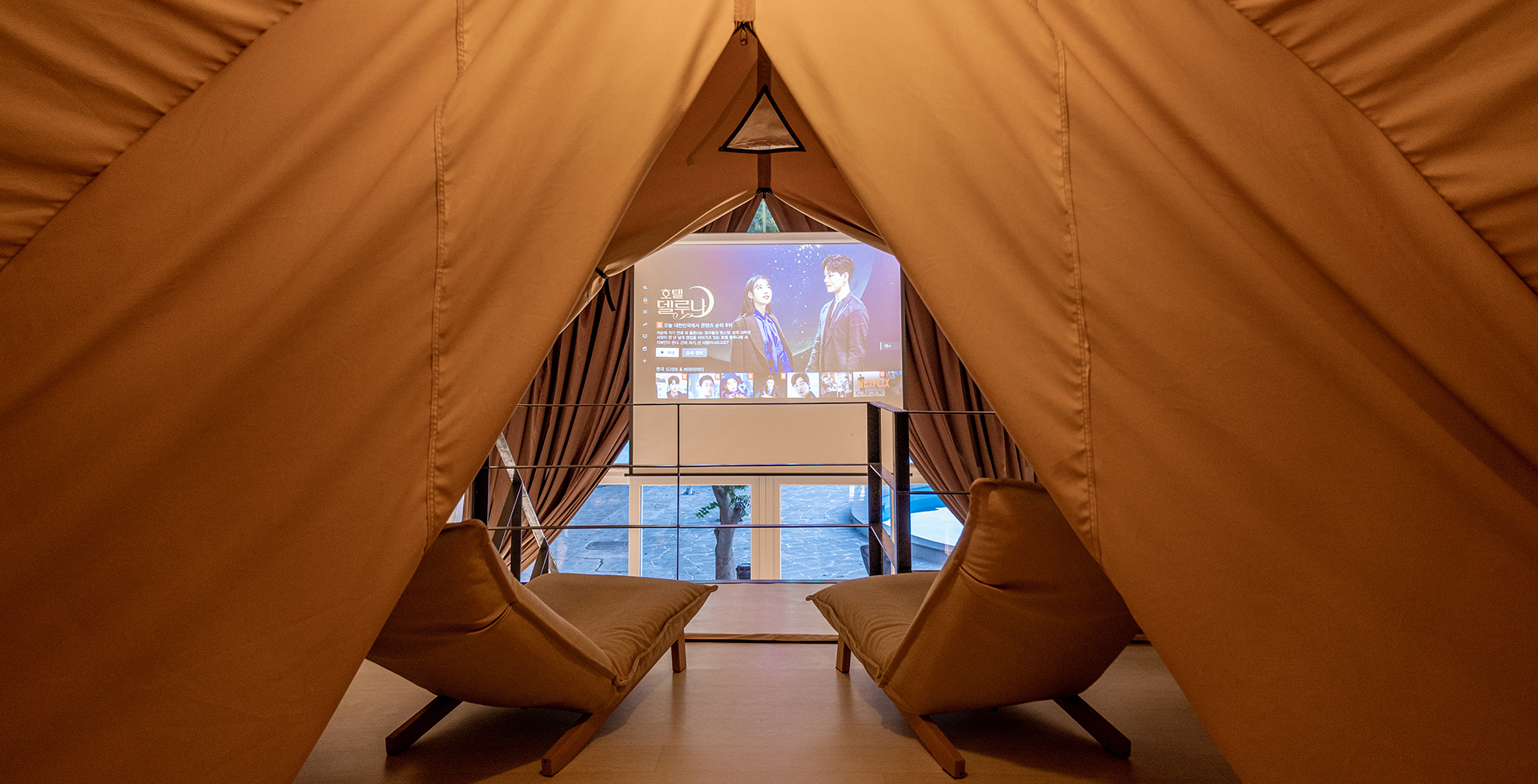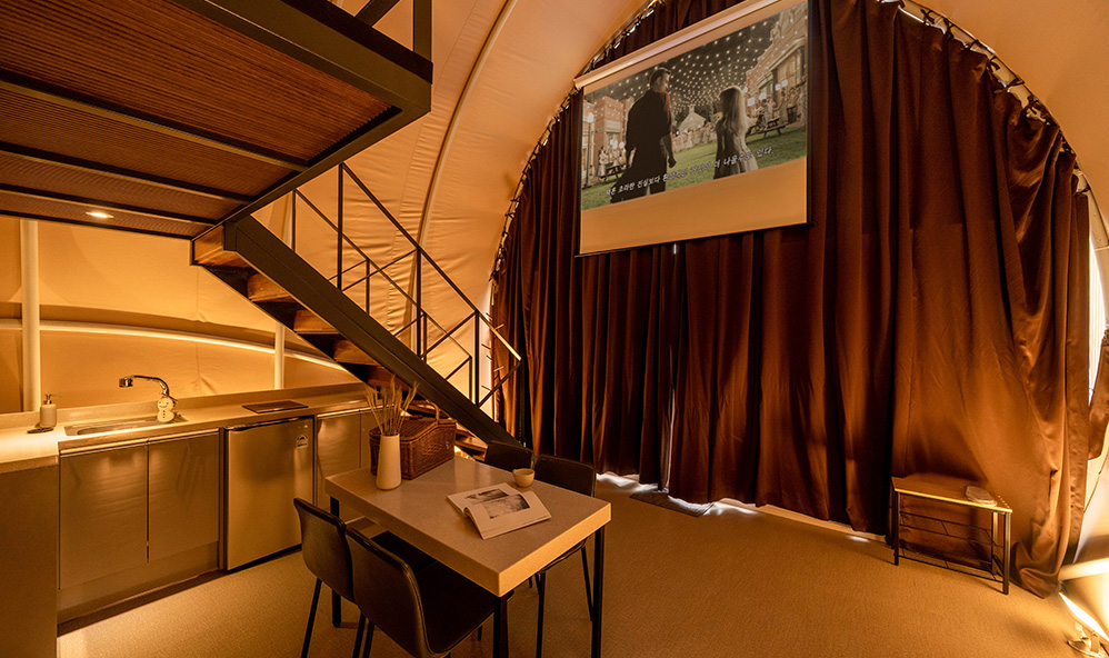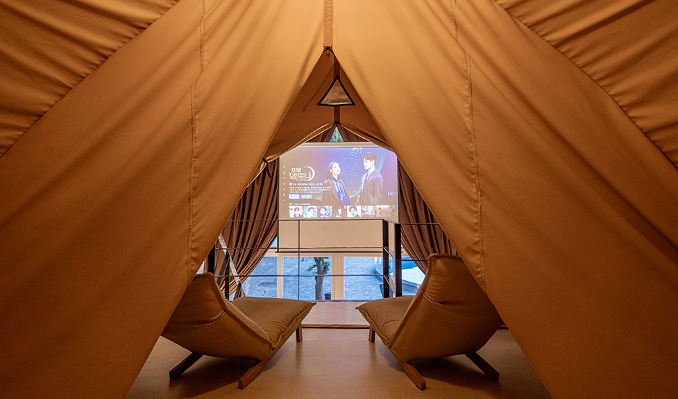 100인치 스크린에서 TV 시청이 가능하며 스트리밍 미디어 플레이어를 통해
