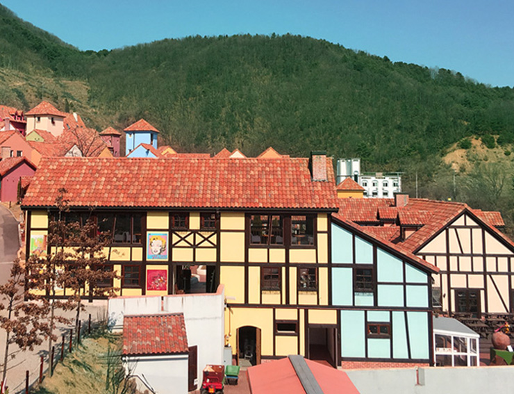 건축 양식과 건물 배치 등을 유럽풍에 맞추었다. 약 5만평의 규모로 계곡 사이의 지형을 따라 길게 이어지며,